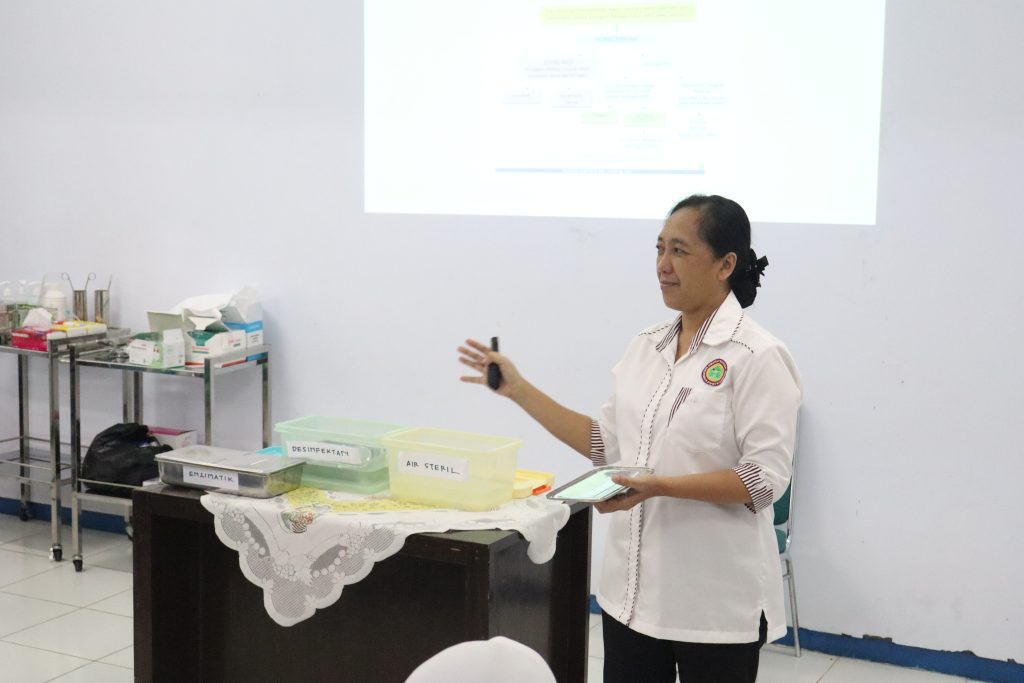 Sri Lestari memaparkan secara detail bagaimana infeksi dapat menyebar dalam lingkungan rumah sakit, risiko yang muncul dari ketidaktahuan prosedur steril, hingga dampaknya yang bisa mengancam keselamatan pasien dan tenaga medis. Lebih jauh, ia menjelaskan strategi dan program-program PPI, mulai dari manajemen limbah medis, kebersihan tangan, hingga penggunaan APD (Alat Pelindung Diri) yang sesuai.